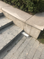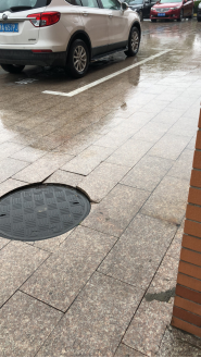 行政楼东北面小门门口地面砖块松动翘起,对行人造成不便,容易摔跤。