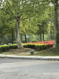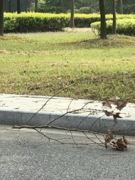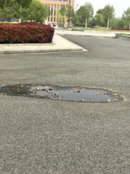 图书馆南面道路积水未扫,两边树枝、落叶未清除。