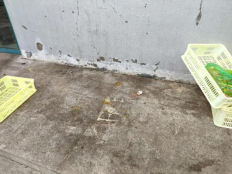 一食堂周边地面卫生环境较差,食品垃圾未清理干净