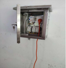 4号教学楼配电箱使用不规范,无人看管,存在安全隐患,充电去专门地方充电
