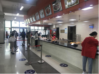 一食堂一餐厅窗口台面干 净无油渍、污渍。用餐高峰 期,学生排队取餐时间也较 短。 |