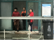 物业中心外围保洁员擅自闯入食堂内部操作间串岗聊天。