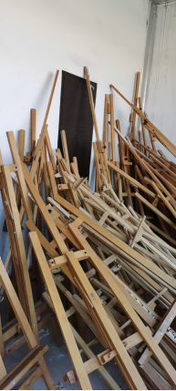 2号教学楼4楼电梯边外平台堆放木架子,已存在安全隐患。(该问题复查未整改)