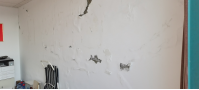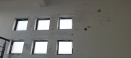 2号实验楼4-5楼东楼梯顶面、墙面受潮反碱,墙面起皮。