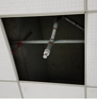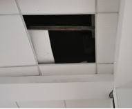 7号教学楼2楼走廊东面吊顶铝扣板缺失1块。