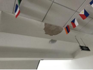 7J-西楼梯1楼楼梯口的天花板顶面腻子层脱落。
