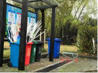 复查:5J西面垃圾点内废弃的灯管未垃圾费雷要求投入相应的垃圾桶内,次日复查发现,废弃灯管仍未清理,垃圾点卫生较差,打包好的垃圾摆放凌乱,未及时清运。