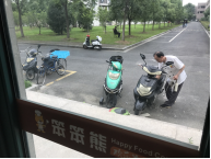 笨笨熊餐厅的员工私拉接线,给电瓶车充电,存在安全隐患。