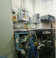 一食堂二楼弱电间线路凌乱,室内温度较高,存在安全隐患。