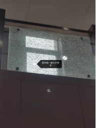 图书馆一楼大厅护栏玻璃破碎