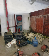 图书馆架空层消防栓被物料遮挡
