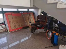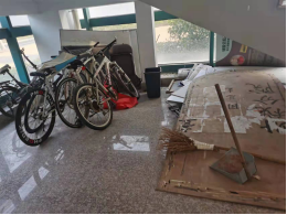 各教学楼及实验楼多数楼梯底部、一食堂一楼压力设备间存在堆积杂物未进行清理、工具随意摆放等问题,安全隐患未消除。