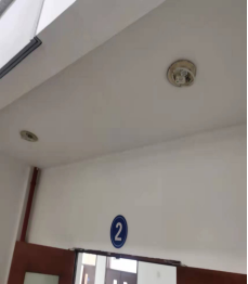 4教中间楼梯 一至二楼吊顶三个圆灯缺灯罩