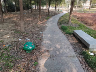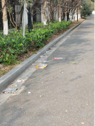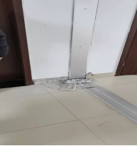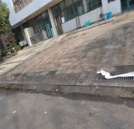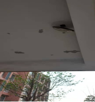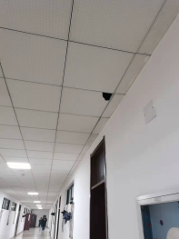 6教至7教的连廊吊顶上一个灯悬挂、一处装饰板裂开;5教202教室边上踢脚线损坏严重、208教室外吊顶上天花板缺口。