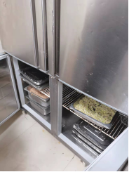 一食堂操作间储藏箱标识和存放物品不符、个别馅料无覆盖;个别仓库分类存放没有做到位。