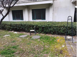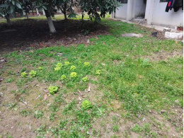 4号寝室楼西侧朝向南绿化带内种菜,檐廊杂物堆放影响整体环境,并存在安全隐患;绿化带内白色垃圾较多。