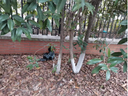 2号寝室楼东侧树枝上衣服悬挂多,影响整体环境。
