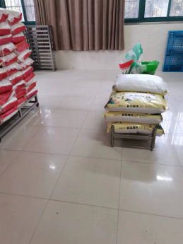 一食堂一楼主食仓库玻璃门窗洁净、地面整洁,整改到位。