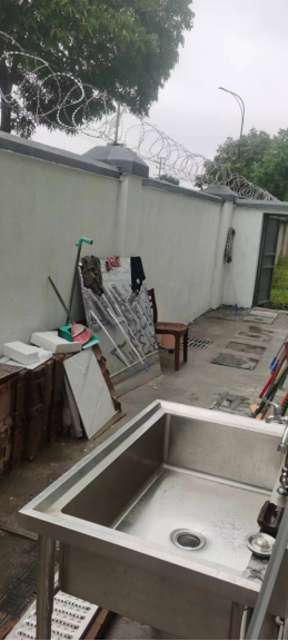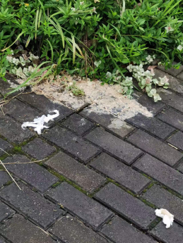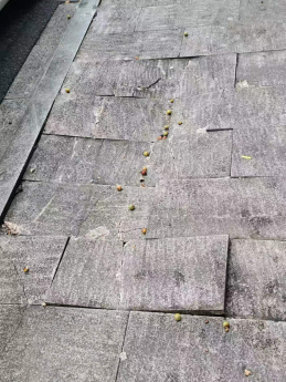 东门西北面的旱池旁呕吐物未及时清理;生活区树枝上悬挂衣物较多,影响整体环境;二食堂东面人形走道两处路面压坏(业务单位施工损坏,待对方修复)