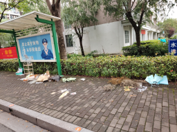 16寝外侧主路两边人行道上垃圾乱堆放,需要及时处理。