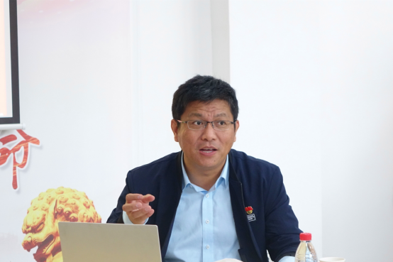 金国锋副院长从中国共产党人的初心和使命出发,结合自身在主题教育学习调研、总结思考后的一些认识和体会,指出新时代党员干部“不忘初心牢记使命”应该做到坚定信念跟党走、直面使命敢担当、挺纪在前不逾矩、无私奉献有作为、品行端正作表率。他希望大家时刻牢记初心、使命,以模范行动树立新形象、立起好样子,为广大师生作榜样,为学院建设发展做贡献。