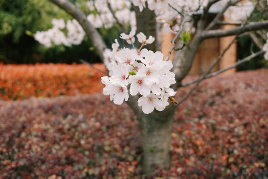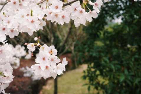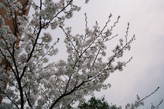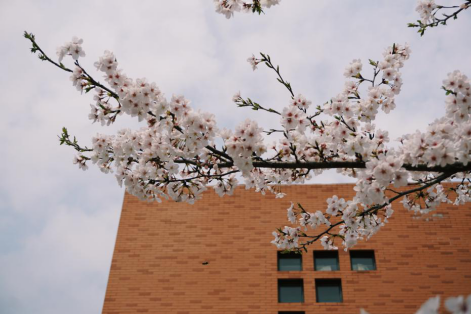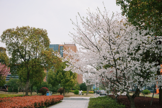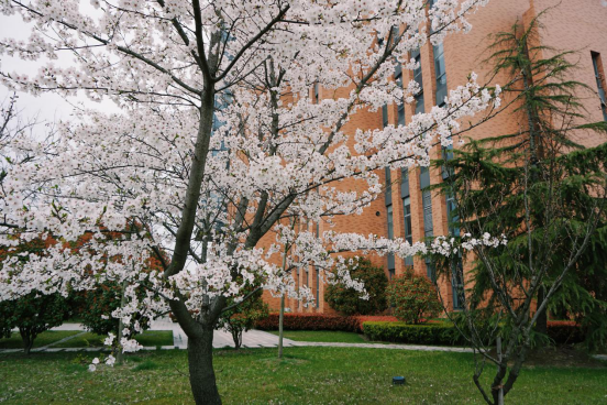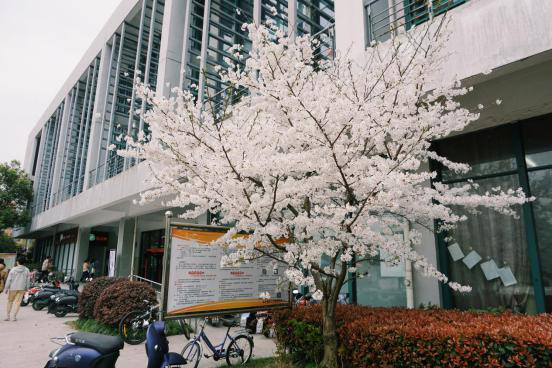 三月下旬,学校的春色早已按捺不住了,樱花也趁着春日正好的时节开放了。