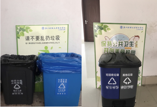 为切实做好垃圾分类工作,引导师生树立绿色低碳环保生活理念,营造人人环保、人人参与的良好氛围,物业服务中心采购了大批的分类垃圾桶,现已投入各教室、生活区域使用。