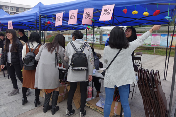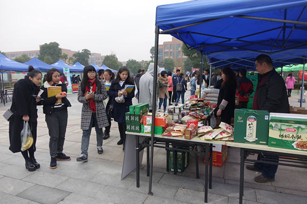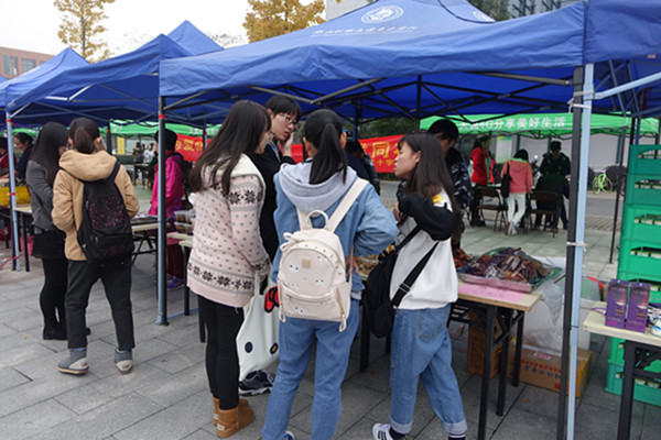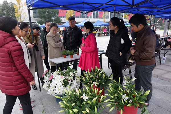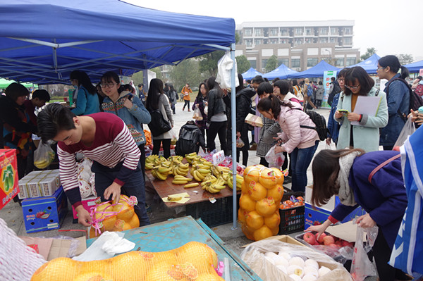 优质的服务、优惠的价格吸引了不少师生前来惠顾,广场上人头攒动,每个展销台前都围满了前来选购的师生,有的提了两箱牛奶,有的正在挑选盆栽,还有的正在购买油米。