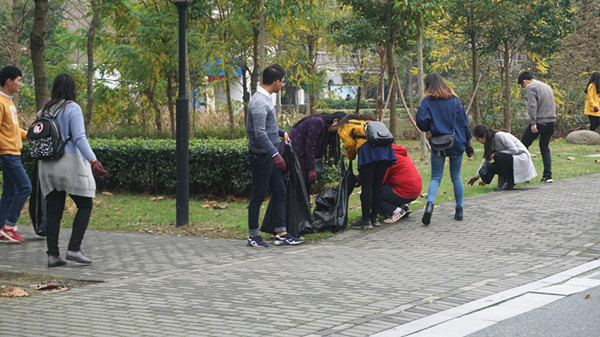 11月23日下午一点,一食堂小广场上人潮涌动,青年志愿、保洁人员、党员积极分子早早地集合完毕,保洁主管沈惠芝老师进行了分组和任务分工。金秋十一月,秋风萧萧,但是校园里却是一副热火朝天的景象。景行湖畔、随想亭边、教学楼附近、生活园区周围都可以看到大家忙碌的身影。风雨过后的残肢枯叶、草丛中的塑料袋等垃圾都没能逃过这群“环保卫士们”的眼睛,均被一一清扫干净。
