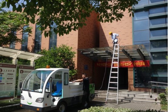 “红五月”活动期间,物业服务中心引进了高压冲地机,用高压对校内雨蓬、地面、台阶、人行道进行了地毯式清洗。并分批检修、清洗了行政楼、实验楼、学术中心等楼宇近600台VRV空调滤网和教学区近千台电风扇进行检修、擦洗;对学生公寓安装一年以上空调进行清洗,为师生提供了更加舒适的工作学习生活环境。