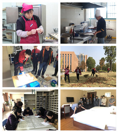 在“齐携手,创优美环境”和“强沟通,提升师生满意率”两个主题活动中,后勤员工们亦都展现了饱满、积极向上的精神风貌,为学院师生带来了“阳光”。“弯腰一秒钟”校园清扫活动中,有学院青年志愿者说道,我们保洁阿姨真可爱!每天这么辛苦,还能笑脸迎人,好棒!“迎院庆·新起点”后勤综合服务保障师生意见征求会上,师生们都肯定了后勤这一年所做的努力。“食堂蜕变进行时”活动里,学院学生权益部学生代表承载着近万名在校师生的诉求与好奇而来,饮食服务中心也以开诚布公的姿态接受大家的监督与指正。