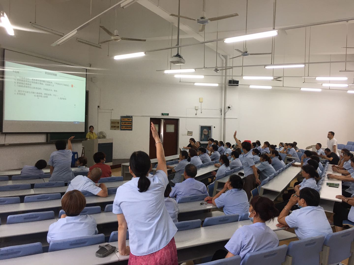 时值全国第19个全国“安全生产月”,为贯彻落实“消除事故隐患,筑牢安全防线”的工作方针,提高员工生产安全、交通安全、消防安全以及防疫等安全意识,6月29日下午,物业服务中心在4教101组织全体员工进行了安全知识培训。培训分为安全知识讲解和现场知识竞答两个环节。