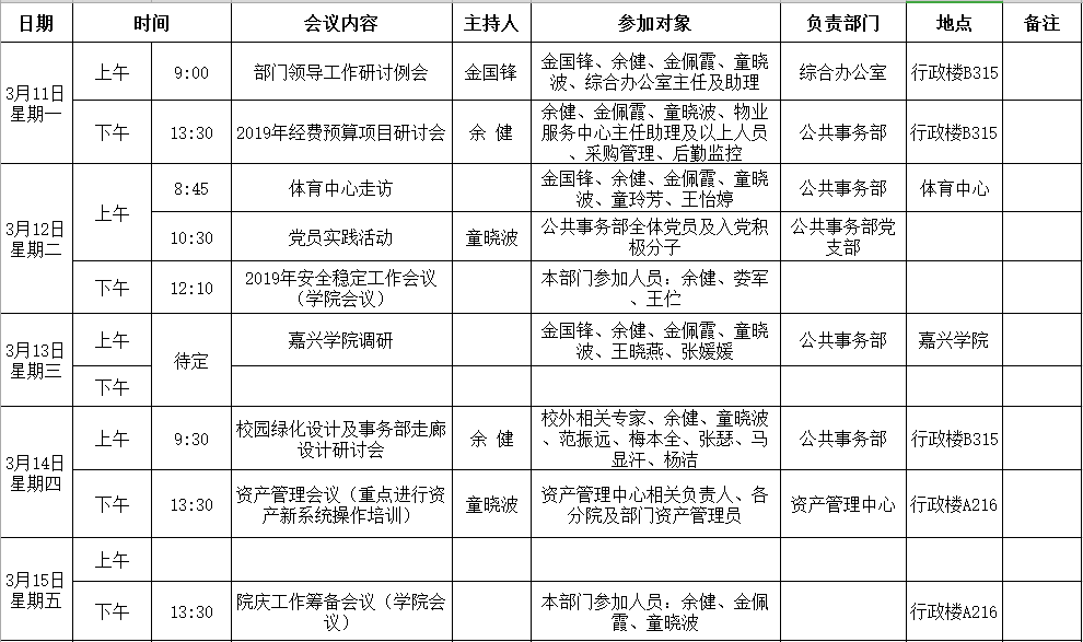 首页 > 工作安排 > 一周会议 > 正文