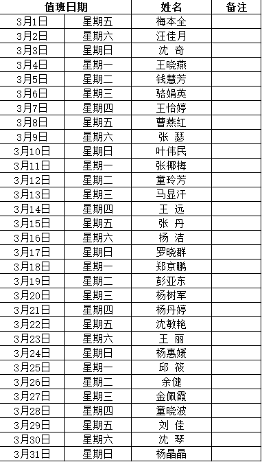 公共事务部2019年3月值班表