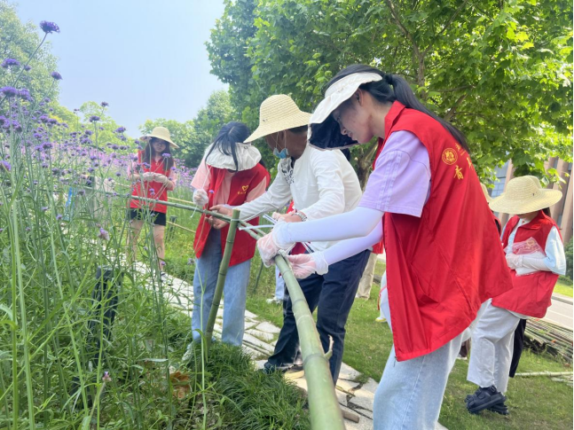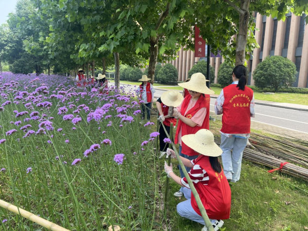 6月2日,值此第51个世界环境日来临之际,后勤基建部物业服务中心携手近30名学院团委青年志愿者开展季象性花卉环境守卫者系列活动之“植草护绿我参与.花香美景我守护”为主题的实践活动,为马鞭草花海做护栏,除杂草、清捡场地上的白色垃圾。