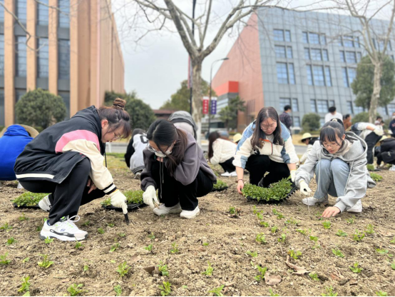 三月春光,万物生长,正是植草种树好时节。为传递绿色环保理念,共建美丽校园,后勤基建部物业服务中心联合学院团委青年志愿者、工商管理学院学生代表分批开展季象性花卉草花种植工作,打造学院季象性花卉环境守卫地,共计90人参与此次种植活动。