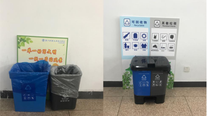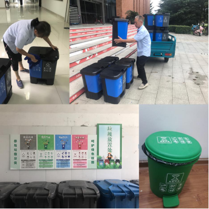 开学后物业服务中心采购了一批分类垃圾桶,现已为每个学生宿舍配置易腐垃圾桶,正确引导学生学会将易腐垃圾分桶投放,养成生活好习惯。以图书馆、5号教学楼为试点,调整二分类垃圾桶、更换垃圾分类宣传板,积极引导在校师生学会垃圾分类,后续还将继续调整其他区域的分类垃圾桶。同时,在生活区的垃圾点张贴垃圾放置点宣传板和黏贴“小脚丫”指示贴,增加生活小趣味,引导师生共同做好垃圾分类工作。