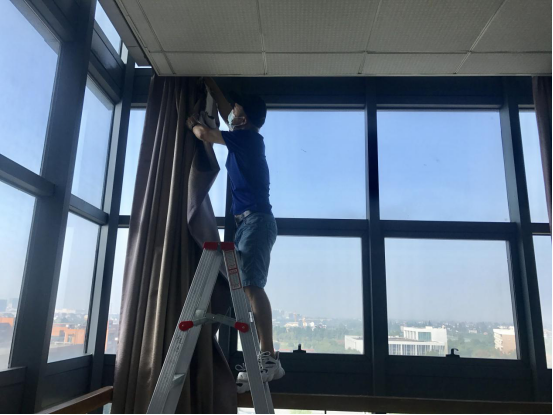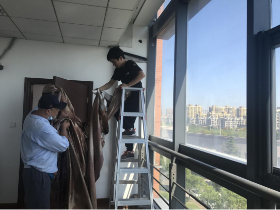 为确保学院办公区域的优美、整洁、健康卫生,物业服务中心于9月18日起有序开展全院办公区域的窗帘清洗工作。