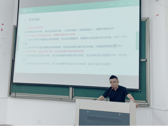 5月12日下午,后勤基建部组织全体签订劳动合同及对社保知识有兴趣的员工在4教101开展社会保险知识培训。培训特邀杭州钱江人才开发有限公司人事主管叶鹏担任讲师。叶鹏系统地讲解了社会保险隶属关系,养老保险、工伤保险、失业保险、失业保险、生育保险等具体知识、操...