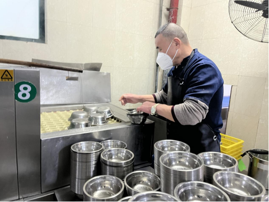 瑞兔迎新,翘首盼来新学期,本着“食安为先”原则,2月8日,饮食服务中心全体员工整装到岗,“食”力护航新学期。净场所,洁餐具中心员工对一食堂所有场所进行整理清洁,对所有厨具、餐用具进行消杀,确保“食”得安心。 用具全,食之安2月8日至9日,中心主任彭亚东...