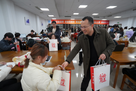 ——后勤基建部与学生工作部联袂送“胜”12月17日,在书香浓郁的图书馆内,一场别开生面的送祝福活动悄然拉开序幕,为即将征战研究生考试的学子们注入无限的动力与希望。用一份份寓意深刻的“定胜糕”为考研学子加油鼓劲,让这份来自学校的关怀与温暖成为他们追梦路...