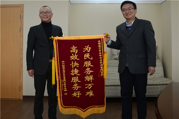 近日,公共事务部副部长童晓波等一行四人,代表公共事务部专程到海宁市金能电力实业有限公司,送去一面写有“为民服务解万难,高效快捷服务好”的锦旗,感谢金能公司在此次学院突发停电故障中为保障师生安全生产生活...